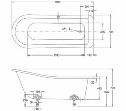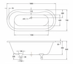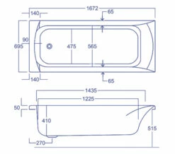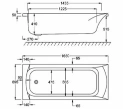 Carron Halcyon D 5mm Acrylic Luxurious Double Ended White Bath 1750 X 800mm