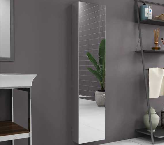 Croydex Nile Stainless Steel Tall Cabinet With Mirrored Doors