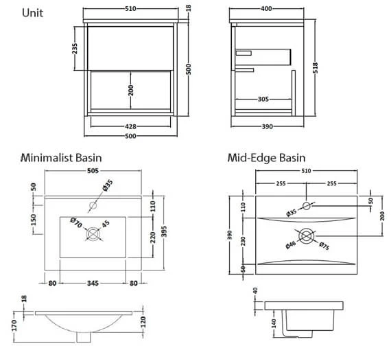 - The inner bowl depth of 500mm and 600mm basin is 220mm.