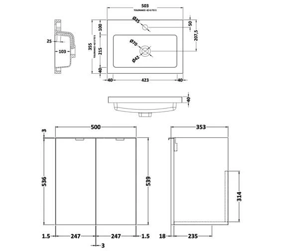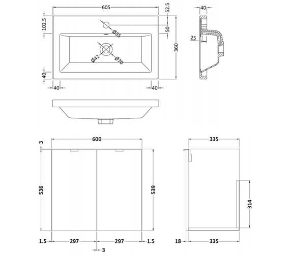Add plenty of storage to your bathroom without taking up too much space when you use to install the Hudson Reed Fusion Wall Hung Full Depth 2 Door Vanity Unit and . The product features a cabinet with two doors that open up to expose ample storage inside. The cabinet measures 500 mm in width by 353 mm in depth by 539 mm in height and is fashioned out of high-quality cam and wood dowel. The unit’s top is complete with a durable white polymarble basin that measures 505 mm in width by 360 mm in depth by 135 mm in height.