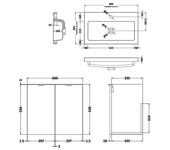 - Cabinet thickness: 16mm.