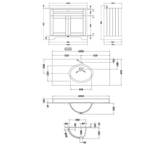 The Hudson Reed Old London Floor Standing Vanity Unit and Basin with Marble Worktop is supplied rigid for truly efficient installation and includes a knob-style handle and soft closing doors. Complete with a classic white ceramic basin on top and suitable for placement within any modern or traditional bathroom layout. This product does not include the tap or the waste shown in the accompanying image.