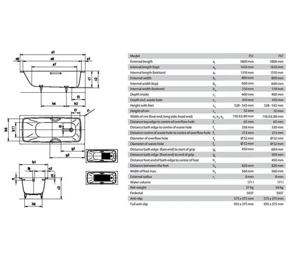 - Thirty years guarantee from Kaldewei against any manufacturing defects.
