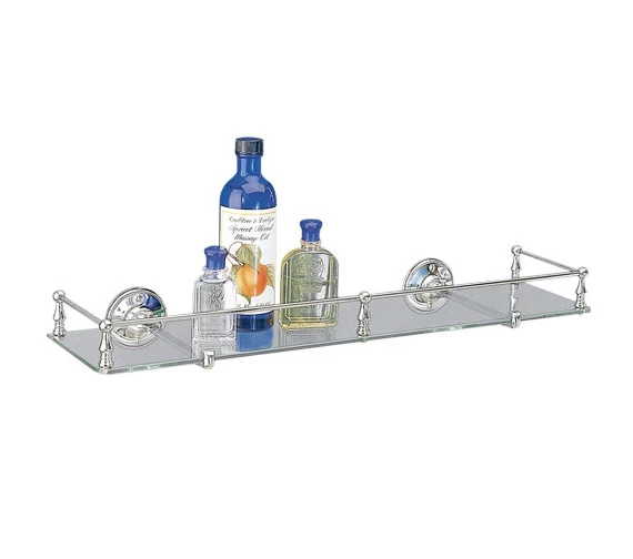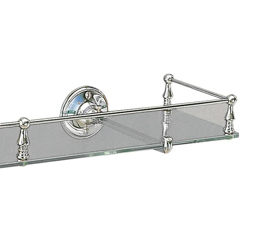 The finely-crafted Glass Shelf with Guard Rail from Millers exquisite Stockholm range exudes a look of luxury and timeless style. The wall-mounted accessory made of brass with chrome-finished guard rail and brackets has ample capacity to hold toiletries. It has a charming traditional design. For proper cleaning, it is recommended to use a mild, soapy solution and wiping it with a dry cloth.