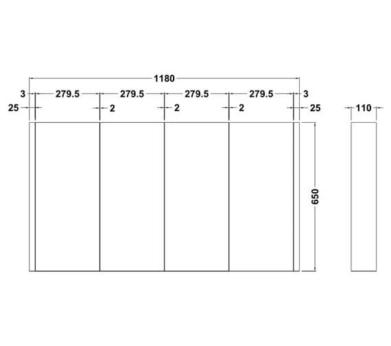 Nuie Eden 1200 X 650mm 4 Door Mirror Cabinet White High Gloss
