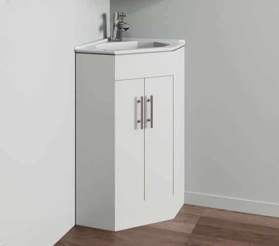 Nuie Mayford Double Door Corner White Cabinet And Basin