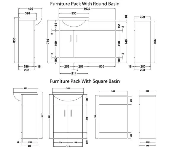 - Furniture pack with round or square basin – [Optional].