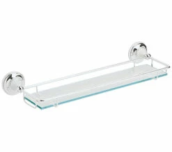 It comes in 2 finish choices of Polished Chrome and brushed chrome. Make a wow statement in your bathroom by installing this glass shelf in your or near your bathroom sink.