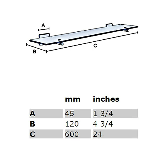 Designed for wall mounting, this creation is prefigured with concealed fastening and supported by a 10-year manufacturer’s warranty against any manufacturing defects. It comes in 2 finish choices of Polished Chrome and Polished Brass. Make a wow statement in your bathroom by installing this glass shelf in your or near your bathroom sink.